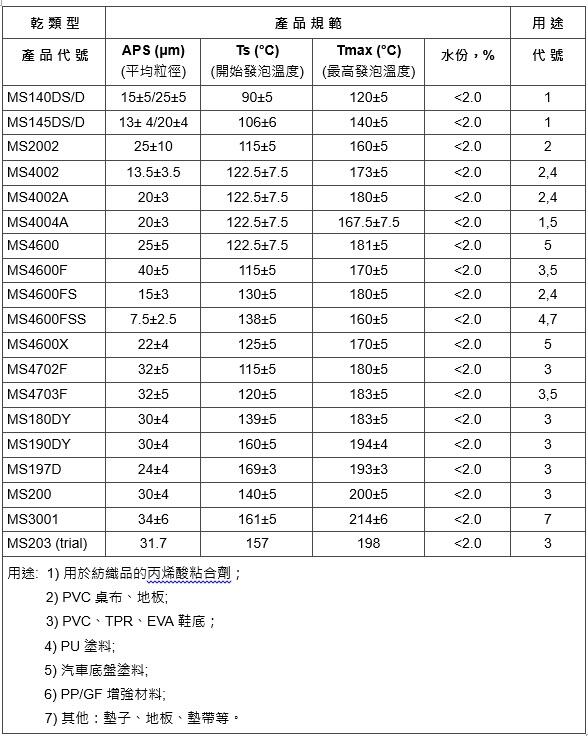 • 可在塑料和橡膠配料中形成不連續氣室結構,並具有成本效益。