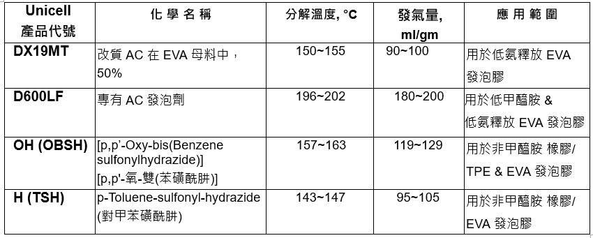 非甲醯胺 和 低甲醯胺 .低氨釋出發泡劑